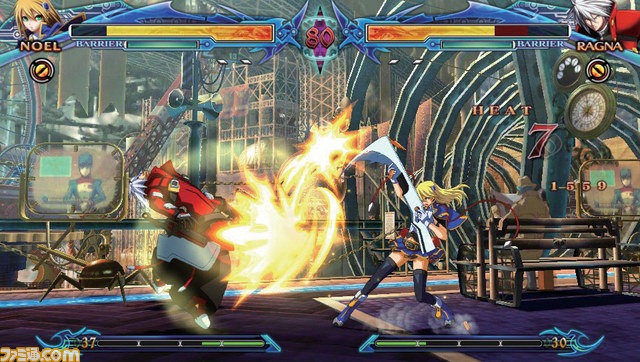 Arc System Works are porting BlazBlue: Chrono Phantasma to the PlayStation Vita. Not only does it share DLC with the PlayStation 3 version, it’ll also contain arcade updates to the game. To help entice players to pick up this on-the-go version, though, there’s also the addition of an all-new scenario. Famitsu reports that there will be an all new comedy route featuring Ragna, Noel, Kagura and Celica, right on the beach and in swimsuits. The below screenshots are from the Vita port.