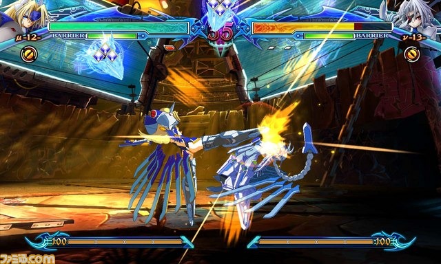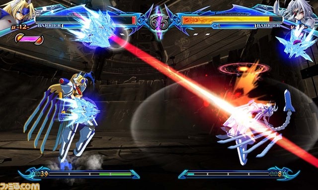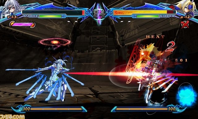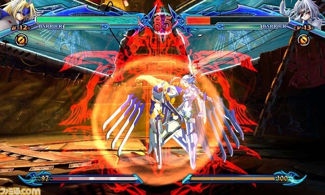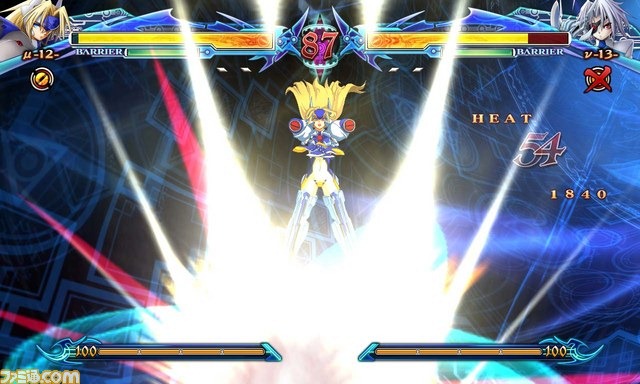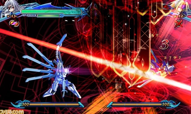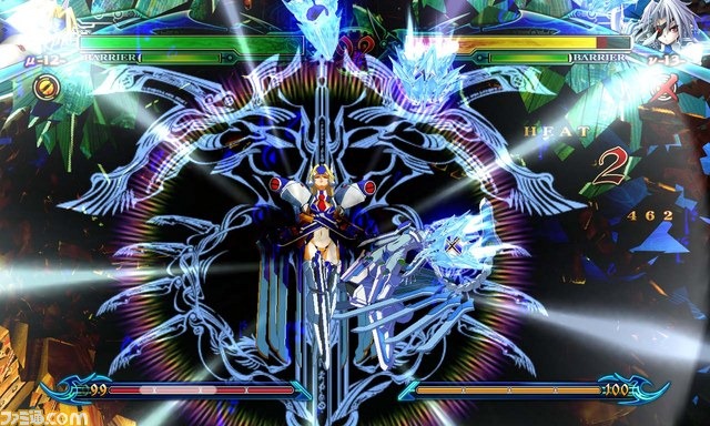 As previously reported, Mu-12 and Nu-13 will be in BlazBlue: Chrono Phantasma as playable characters, and Famitsu.com have released screenshots of both, along with descriptions of their movesets. You can take a look at the screens below. Mu-12: