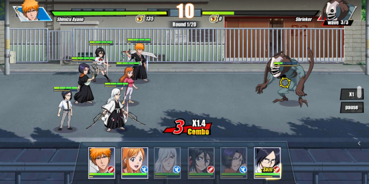 Which is nice, in a way. Bleach: Immortal Soul makes it easy to speed through the earliest portions, like the Substitute Shinigami opening arc. You have skip options for the dialogue, which frankly isn’t all that great and doesn’t capture the same nuance as the original series even when it parrots its lines. It’s a quick overview to get you to the turn-based battles and unlocking new characters. (For example, the game will give you characters like Orihime and Chad, but the others are locked away in a gacha that will “occasionally” give you one fully unlocked character but typically only gives you pieces you can put toward unlocking or upgrading others.)