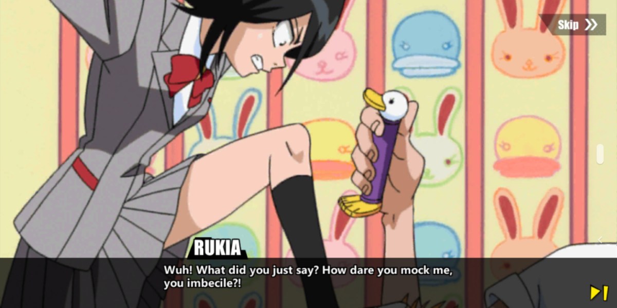 The downside is, the production quality isn’t great. Bleach: Immortal Soul isn’t a mobile game along the lines of Dissidia Final Fantasy: Opera Omnia or Love Live: School Idol Festival. When it tells its story, we see the same 2D characters talking at each other against the same backgrounds you move and fight along. Occasionally, a still image from the original anime adaptation will appear, but it’s a standard definition image that can honestly end up looking really blurry. Which means… it probably isn’t the best pick for diehard fans who might be expecting a higher quality overview of the series with iconic battles interspersed throughout. Also, it has a habit of cutting to black with a brief sentence saying things to the tune of, “Later, after Ichigo was at school…” or the like.