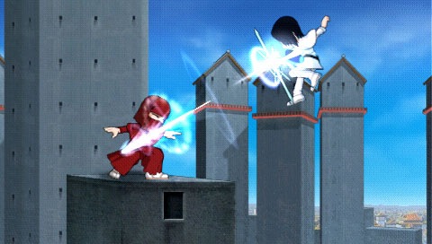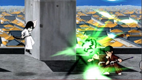 Sony is straying from their Bleach: Heat the Soul series with Bleach: Soul Carnival. Racjin didn’t make another versus fighting game. Bleach: Soul Carnival is a Double Dragon style beat em up with super deformed Rukia and company. Instead of fighting each other you’re going to wallop weak hollows and wild boars. In one mission Ganju’s boars are acting up and at the end of the level you face him as a boss.