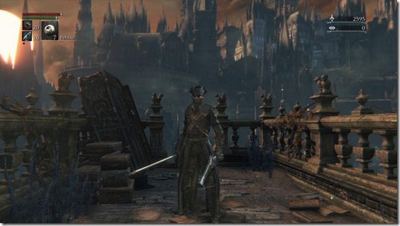 While making the first move is encouraged, you can’t just mash the attack button and come out on top of every situation. Many enemies will be able to attack through your barrage, killing you before you can really do any real damage. When fighting a tough enemy, you’re constantly balancing between looking for openings in their attack patterns and trying to get some hits in to get health back. It’s a risk-reward that further increases the tension in an already very tense game. But even with all the risk-taking, what really stood out to me is the emphasis on planning. Often it’s better sit back and let enemies pass you by before making a move. A very early area in Bloodborne has you exploring a street full of enemies, and it’s a scene reminiscent of the opening village level of Resident Evil 4. Some enemies are huddled around a fire, others are waiting on top of ledges with their guns loaded, and others are patrolling up and down the street. It’s an incredibly dangerous situation, just running in would be suicide. As you approach this area, you can get a good view of all of it from a distance. It’s perfect for assessing where the patrols move, who is positioned where, and what the best approach would be. I ended up devising a plan where I would lure out the patrols as carefully as I could, then move on to the gunmen on the sides. From there I would take some chances and rush the enemies in the middle. After a few attempts, I managed to pull everything off perfectly. I love with it when a plan comes together. You’re given a lot of options to concoct plans like these. Maneuvering around hazardous enemies is easier than ever thanks to the fluidity of your dodges and rolls. Items like pebbles and Molotov cocktails allow you to either lure key enemies away from the group or straight up remove them from the playing field. Additionally, your main weapon can change modes, generally from a close range melee to a wide sweeping blade, so you can quickly adapt to situations as they unfold.