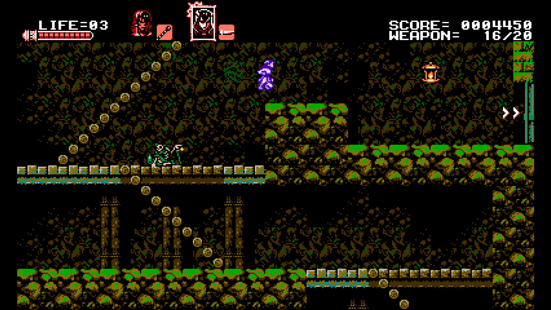 ▲ With Miriam’s high jump, you can clear the raised platform and access the door to the right.