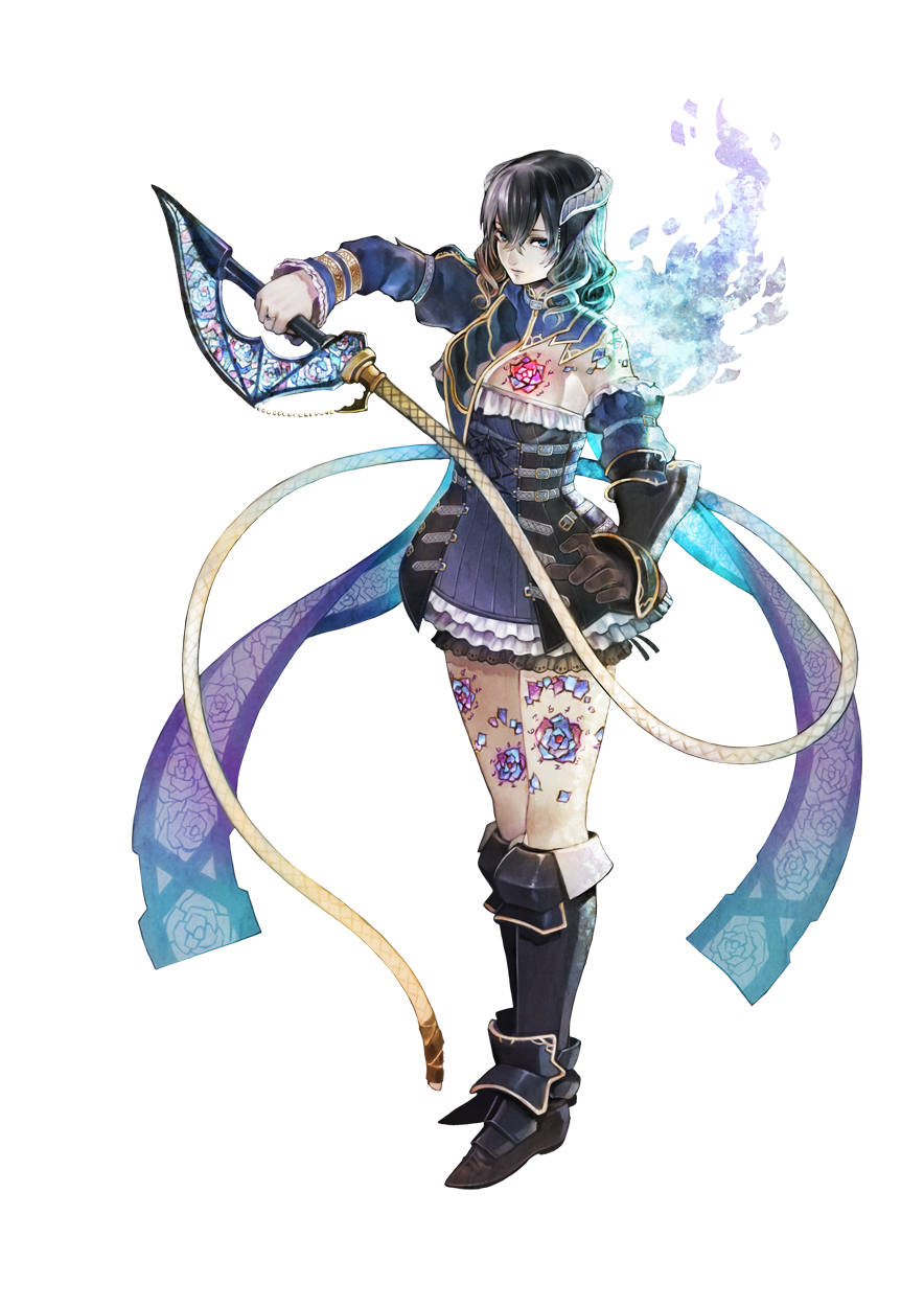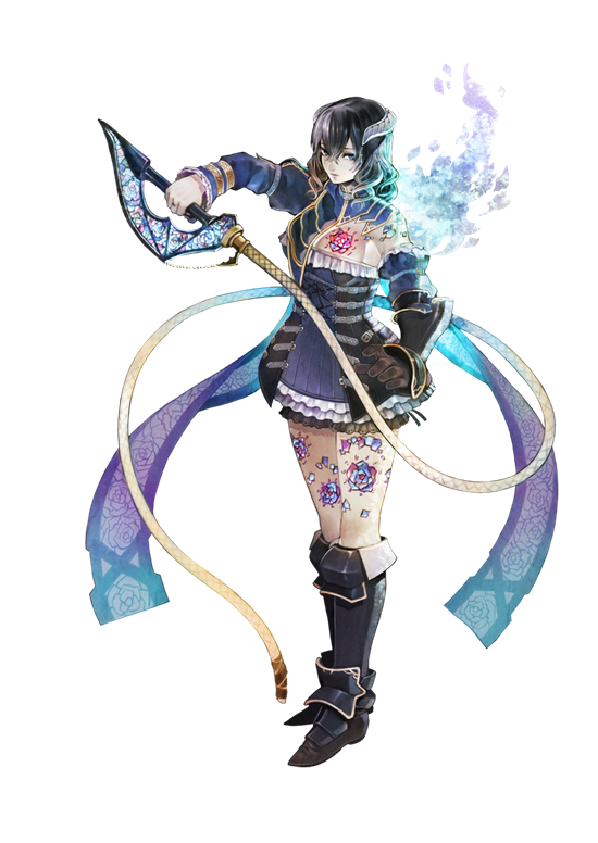 A young woman whose body was implanted with Shards by alchemists. The long reach of her whip, along with her dagger, rapier, axe, and sickle sub-weapons, is perfect for taking out weaker enemies. She can jump higher than any other character, and her slide lets her access tight spaces!