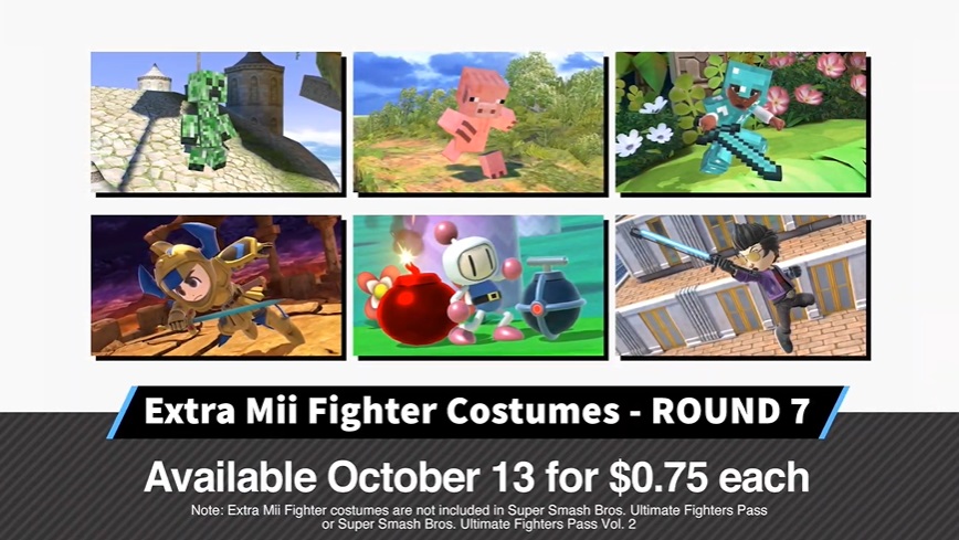 Super Smash Bros. Ultimate is available for the Nintendo Switch. The Mii Fighter costumes are on the way on October 13, 2020, just like the Minecraft Steve and Alex DLC.