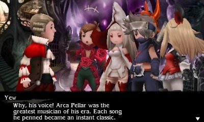 It’s also about the little things. Minor players from Bravely Default will show up again in Bravely Second, usually in the side-quests that give you additional jobs. My favorite instance of this comes when you’re left to decide between the Performer and Pirate Asterisks. In the first game, you needed to meet the bard Arca Pellar’s students and get his baton to defeat Praline, holder of the Performer Asterisk.