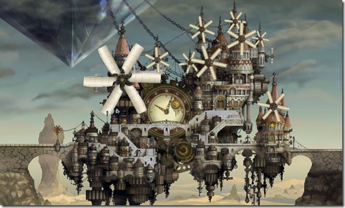 Those of you who played Bravely Default might recognize Ancheim, the Land of Sand and Time. However, it looks a little different this time, chained to what appears to be a giant crystal in the sky…