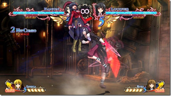 Ougon Musou Kyoku X has an abundance of butler and maid type characters. One of these is Kanon, the Ushiromiya family servant with low self-esteem…although that doesn’t stop him from putting up a good fight: