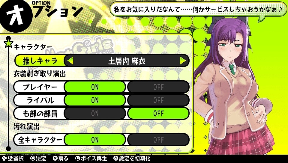 The Choco-Banana and Cat Paw items are new interrogation items, a feature that trains the Ranger Corps girls in how to resist enemy interrogation tactics. We’ve also seen some pretty strange items, like… fermented beans and cockroaches in our earlier report. These items cost 200 yen, each. In Bullet Girls, there’s a character by the name Meika Hoshikawa who is the advisor of the Ranger Corps. While she’s the default navigation character, who helps out in the story with results and updates, the DLC adds alternate characters for the role. These characters can also be “touched” whenever they’re on the screen helping you out. Here’s a look at the new characters, who were previously just members of the Ranger Corps. They each go for 150 yen.