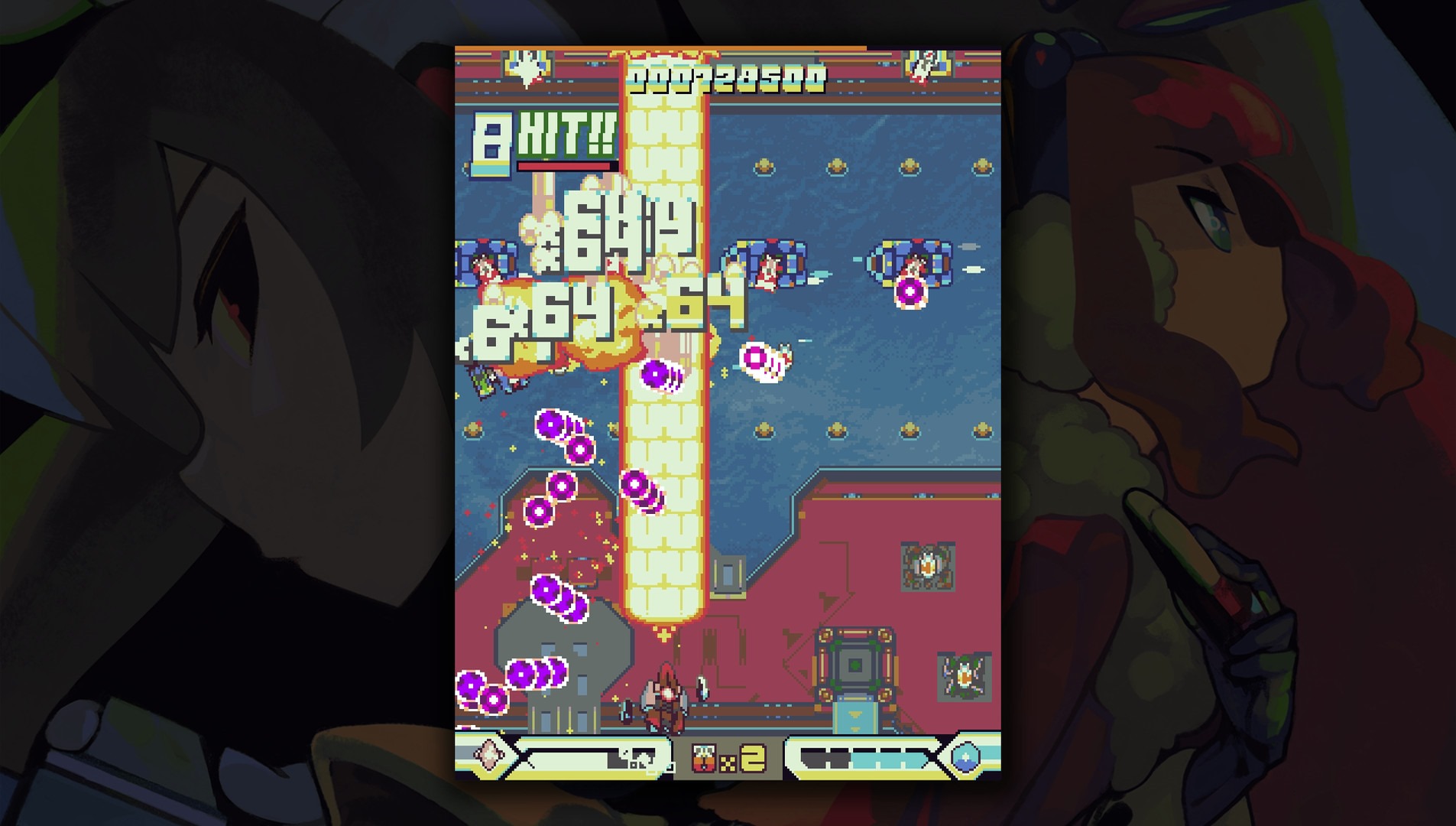 Mae is more than equipped to handle the Blue Revolver environmentalist group. Blue Revolver offers two pilots to choose from, each with three gun types they can use, along with eight different special weapons. These special weapons all have specific uses to suit a play type, from blocking bullets to clearing crowds.