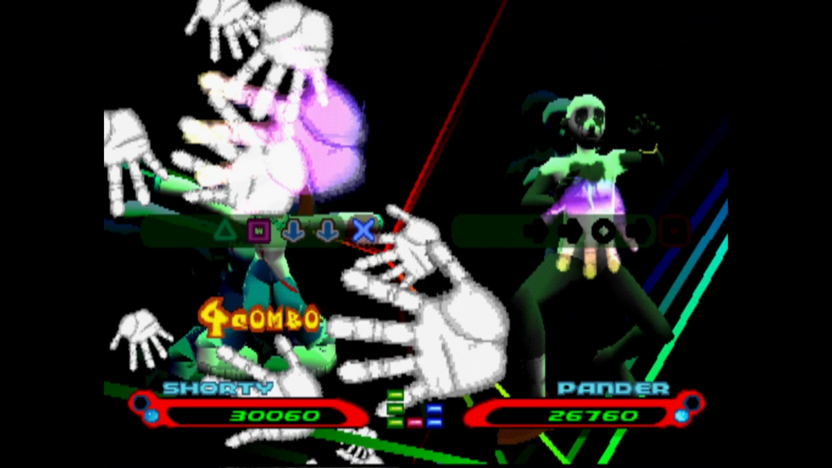 Bust a Groove 2 is a dance battle game that plays like a rhythm one. Like others in the genre, it revolves around pressing buttons to a beat. However, Bust a Groove 2 differs in that you have to match the fourth beat of the song in order to fully complete your dance move. Failing to do so will count as a “Miss” and your character will stumble. Too many failures will cause the DJ to go, “Hey, what’s up?!” or “MOOORE RHYTHM!” in a tone that can get real grating real fast. But, it’s all good.