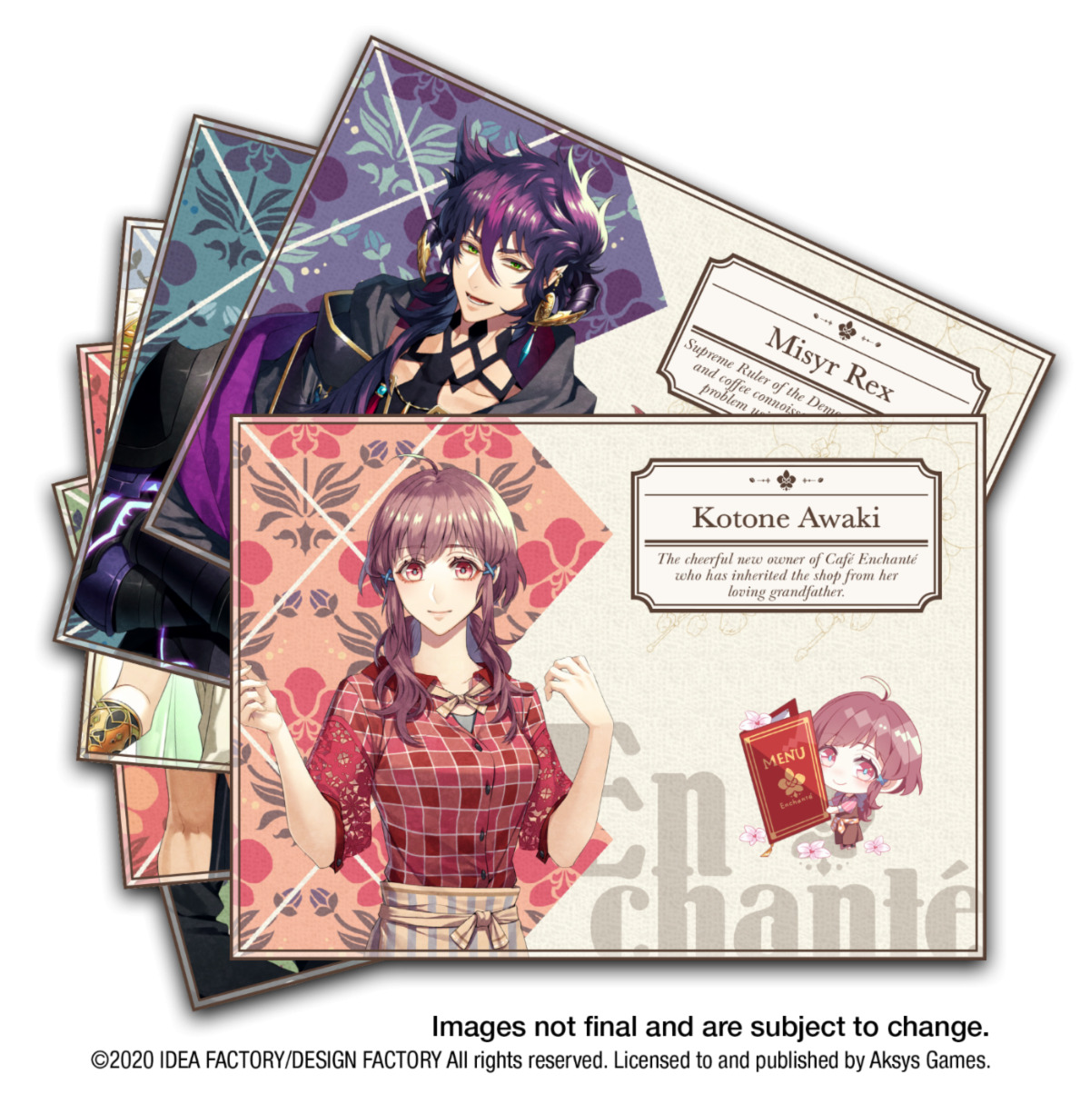 Aksys’ next Nintendo Switch otome game will include something special with its physical copies. Cafe Enchante art cards have been announced. If people pick up a launch copy of the game, they’ll get a set of six character cards in the box.