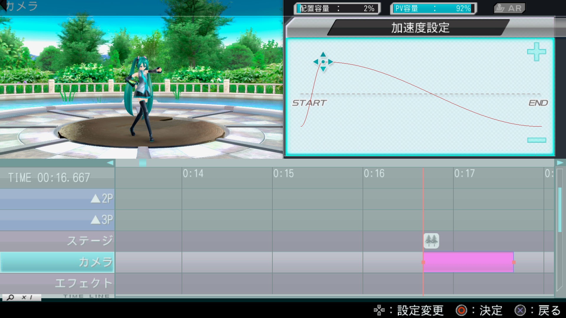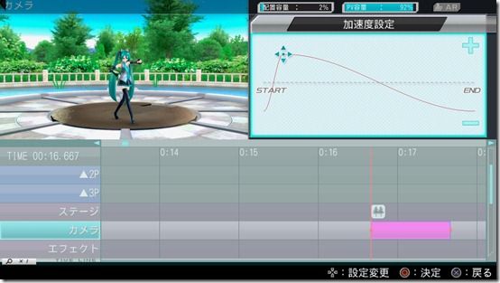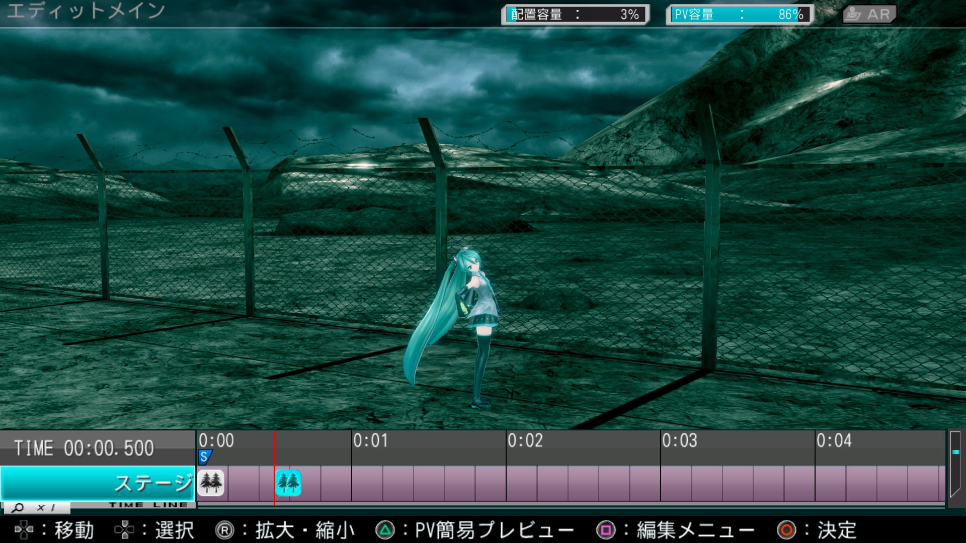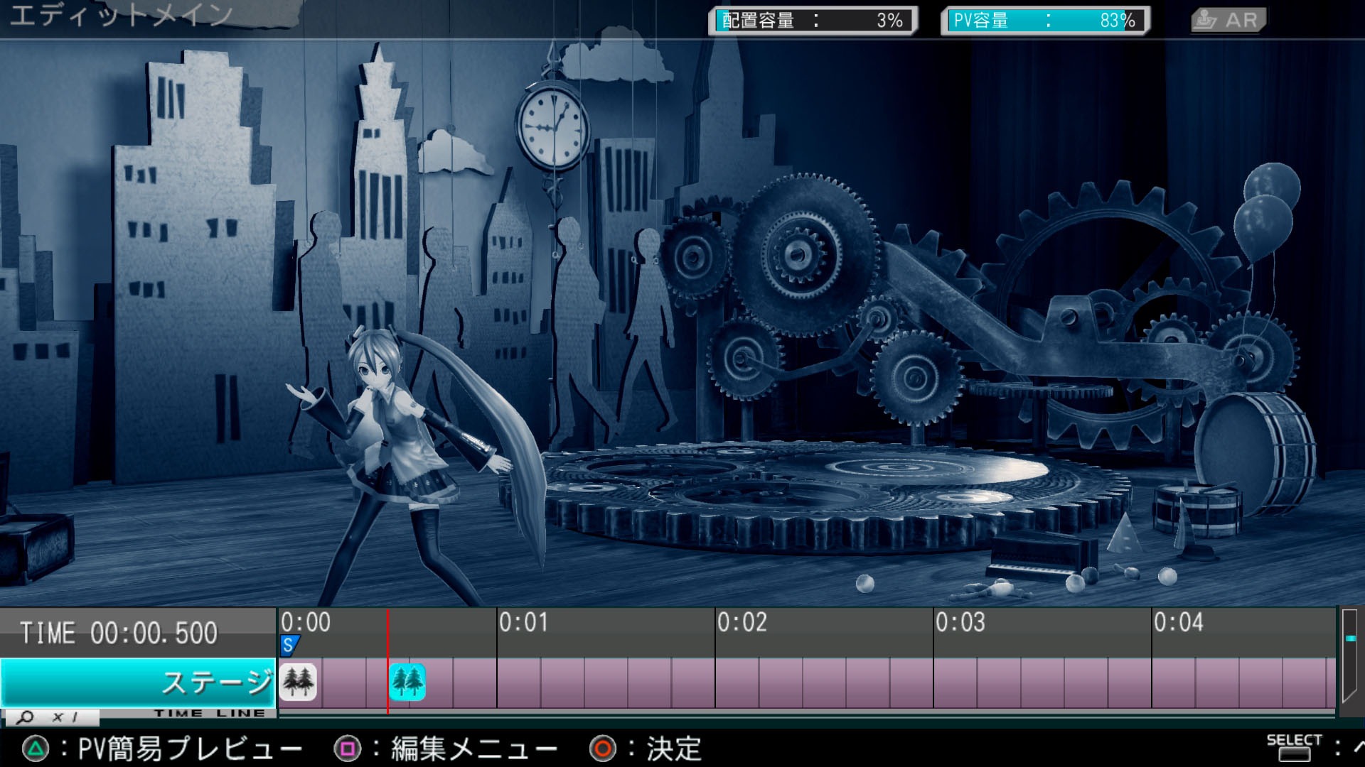 Just like professional software, you’ll use a timeline to follow the song you’ve chosen as the base and then control everything from it, such as exactly when the camera pans out over the crowd or when additional music comes into play. It looks daunting at first but once you get the hang of it, the system makes a lot of sense. The timeline style allows players to see at a glance exactly what everything else is doing at the exact timeframe you’re fiddling with. If that’s still too intimidating, though, there’s also a “Simple” version of it to make things easier, just like in Project Mirai 2.