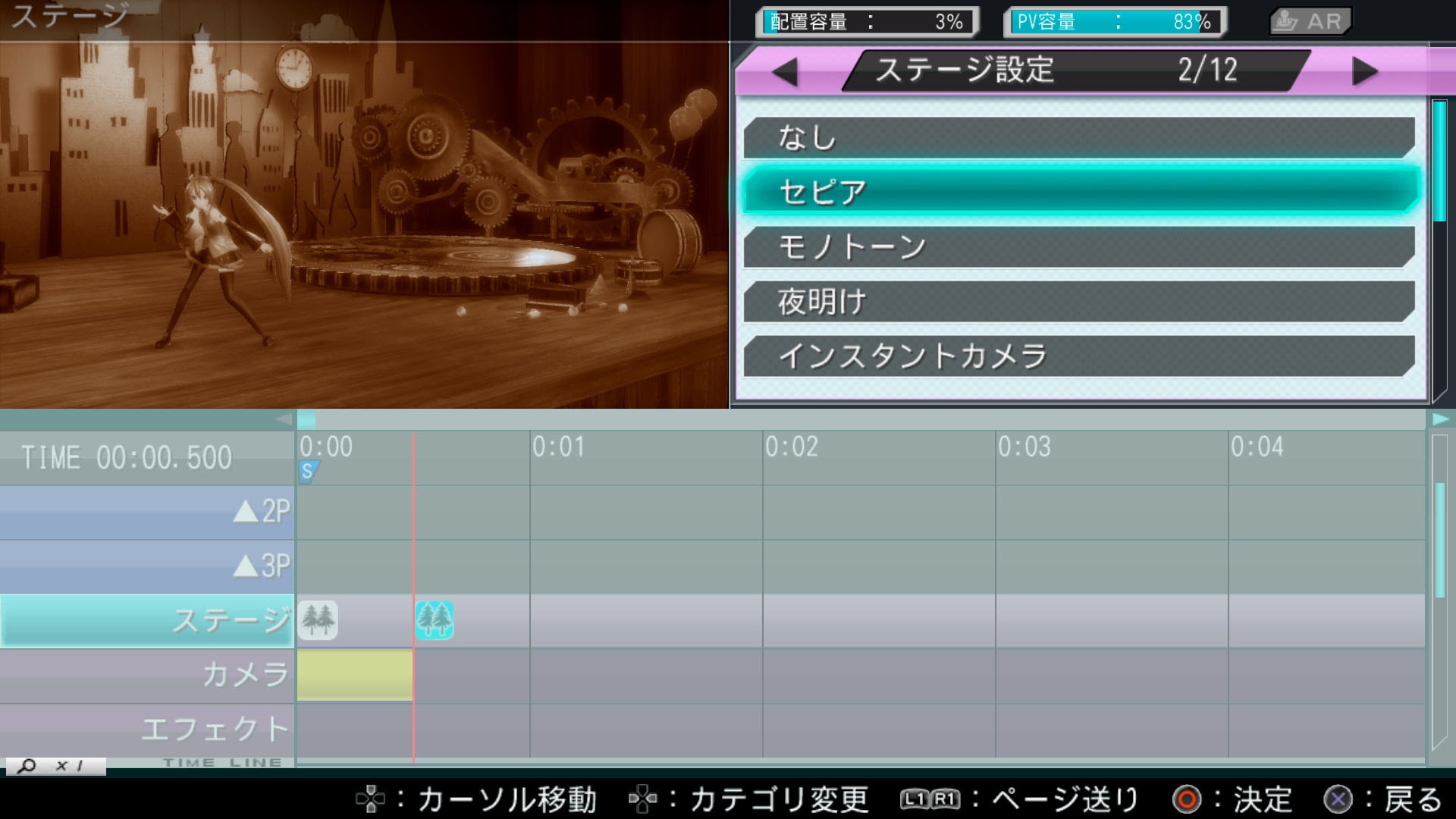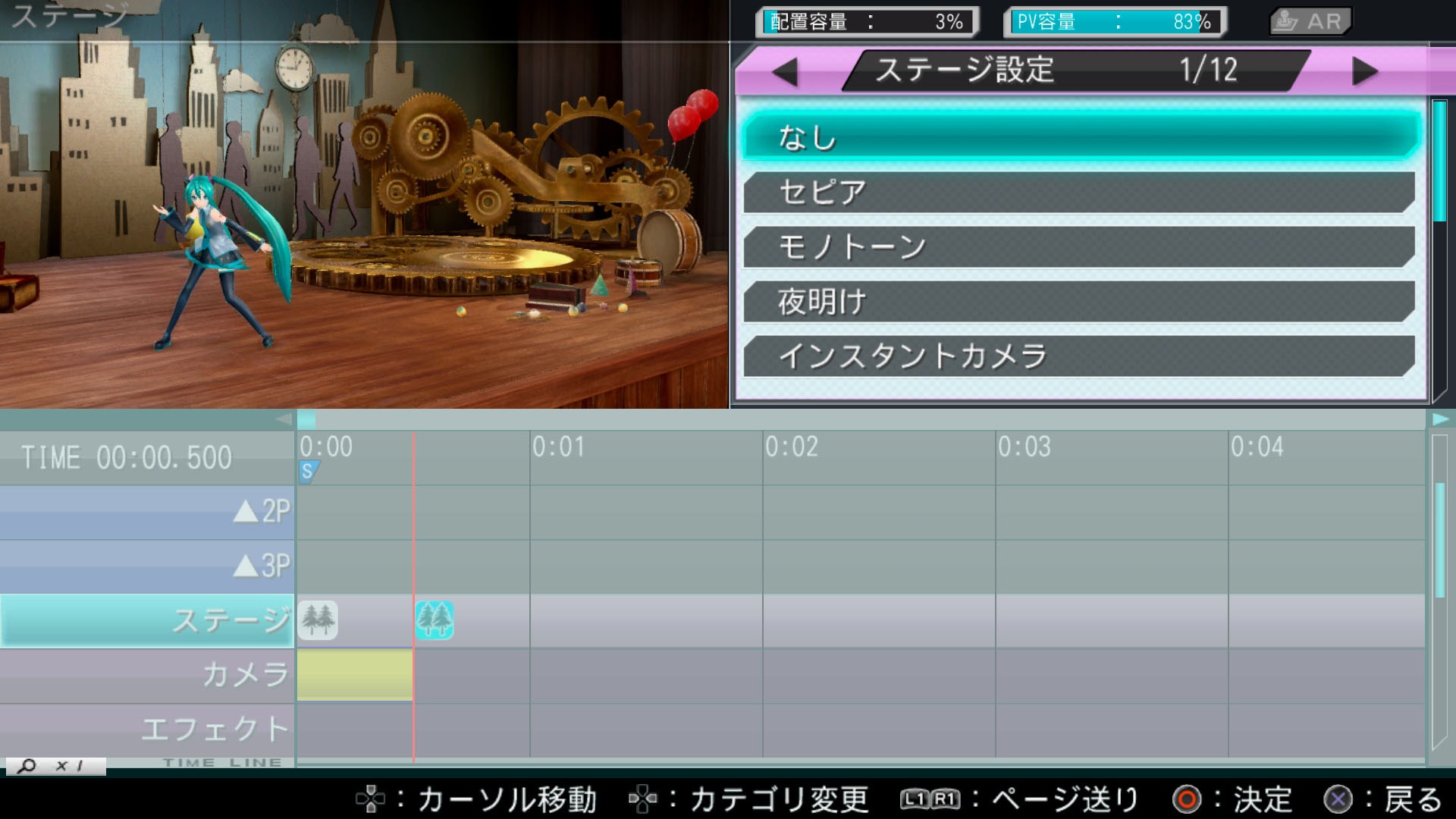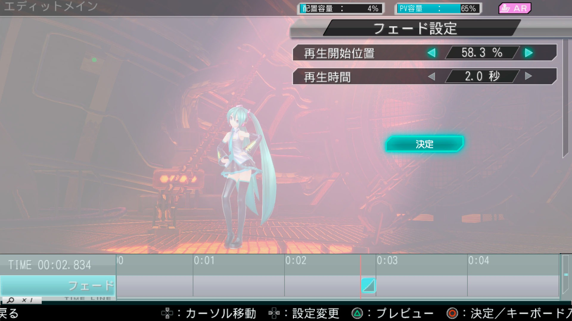 Just like professional software, you’ll use a timeline to follow the song you’ve chosen as the base and then control everything from it, such as exactly when the camera pans out over the crowd or when additional music comes into play. It looks daunting at first but once you get the hang of it, the system makes a lot of sense. The timeline style allows players to see at a glance exactly what everything else is doing at the exact timeframe you’re fiddling with. If that’s still too intimidating, though, there’s also a “Simple” version of it to make things easier, just like in Project Mirai 2.