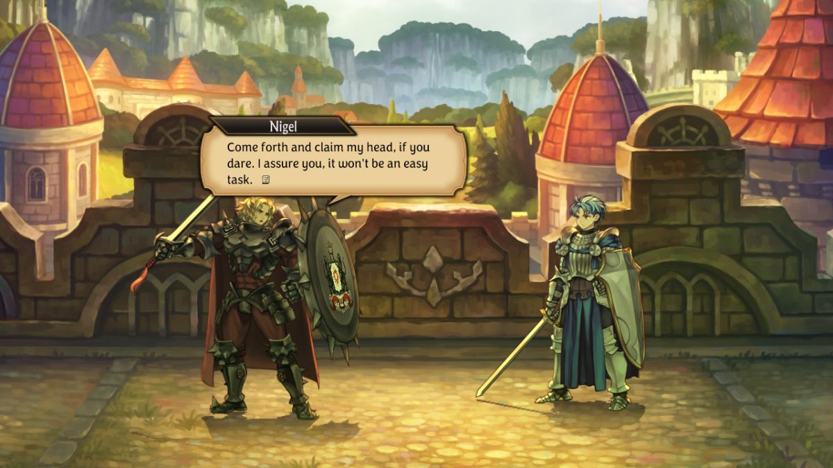 As in “The Holy March,” Nigel will end up popping up as an ally you can control. He just doesn’t show up right away. I’d say about a third of the way into the fight, after a story segment that involves Alain learning the Cleansing Valor Skill, he will appear in a scripted scene. He then permanently joins the Liberation Army when he does and comes under your control.