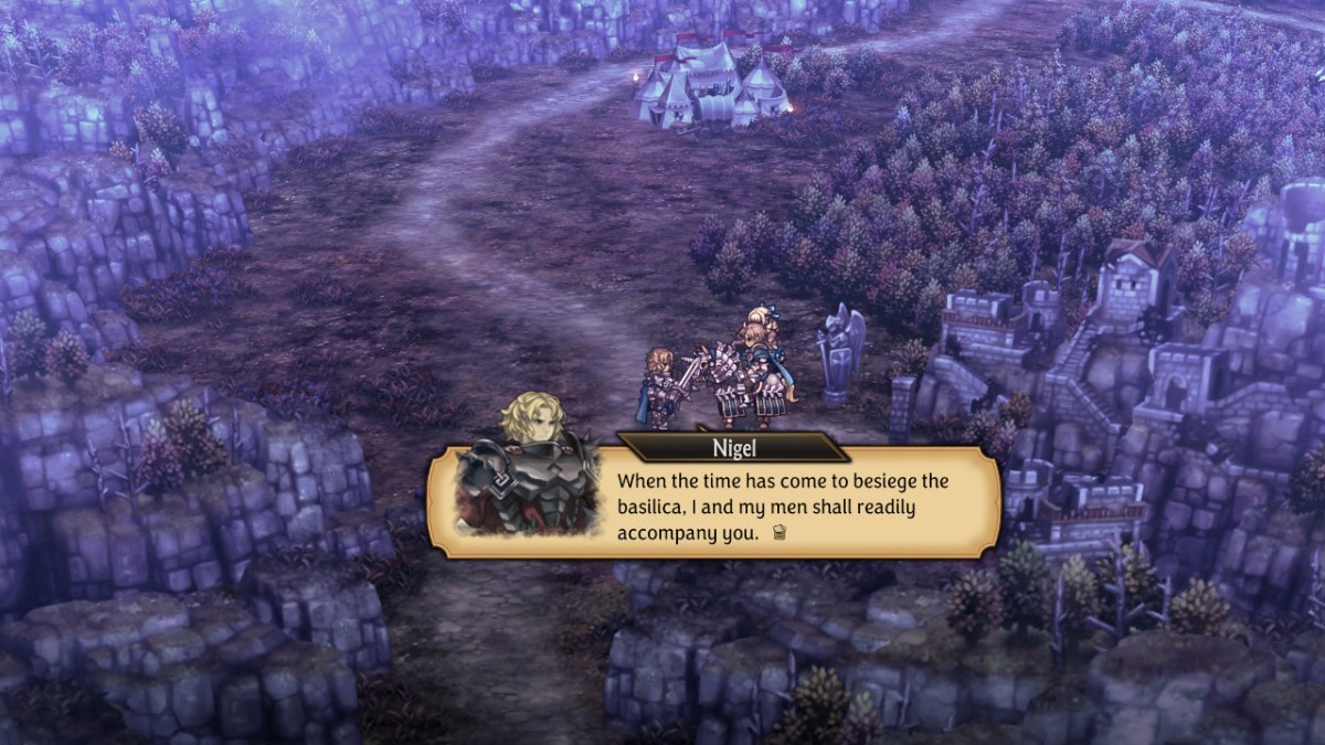 You need to take the quest “Unicorn Overlord” in Cornia to start the process to recruit Nigel in the game. This takes place in Gran Corrine, in the center of the map. It’s also completely blocked off by battle markers leading to the area, warning it is an Enemy Level 40 fight.
