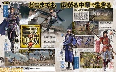 Koei Tecmo revealed in this week’s issue of Famitsu magazine that the Wei officer Cao Xiu will be a playable character in Dynasty Warriors 9. In addition to the Cao Xiu (wields a fan-sword) reveal, the magazine shows Xun Yu (throwing daggers), Zhu Ran (staff), Jiang Wei (dual trident), Yueying (pike), Wen Yang (mowing blade), and Zhuge Dan (feather fan) as returning characters with new visuals. Dynasty Warriors 9 will release for PlayStation 4 in Japan, and PS4, Xbox One, PC for the West in early 2018.