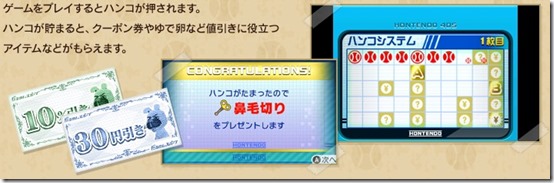 By playing through the games, you can collect stamps, which can be exchanged for coupons or boiled eggs upon filling the card. The coupons vary from specific amounts or percentages off, or even the much higher “?” marked tickets.