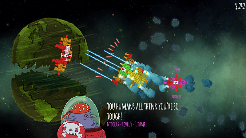 To this end, the game has been drawn up to look like one of those weird, gross cartoons. Plus, a story has been sewn in that has you chasing your little brother around the universe and he goes around blowing it up. Along the way, you’ll meet various animal characters including a goldfish astronaut and a space pirate bird. You can find out more about Captain Forever Remix on its website.