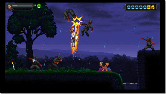 Hiro’s power does not all come from offense, though. Players are able to parry any incoming attack in the game, from the lowliest ninja to the last boss, can be blocked by defending with the right timing. Doing so charges a rage bar, and when that is full, players can do a Kia Stomp, which destroys everything, from enemies to the environment, around Hiro. In this way, defensive players are highly rewarding for carefully turning a foe’s attacks aside.