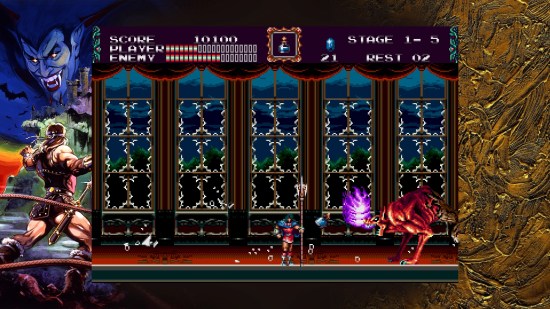The bonus features for each game are skimpy as well. We have six different display options for each game, allowing people to go with options like original, pixel perfect, and 16:9 both with or without scanlines for console games and the handheld offering different Game Boy effects. Each game has three frames to choose from, should you choose a display that leaves room on the side, however one is just plain black and only one of the other two has actual Castlevania art. You can also save a replay, which you can choose from the main menu of a game, or create a single save state. (In this situation, including more save states should definitely have been a priority.) The heart and soul of the Castlevania Anniversary Collection is in these eight games. Each one of them has merit and value. Every one of them shows the creativity and ingenuity of the series, and how it would adjust and adapt to different platforms. We see how it worked on the NES and SNES. We watched how the Genesis prequel used different special effects and music. We were able to see what was most important and preserved in the stripped down Game Boy titles. We even watched things get silly with Kid Dracula. Some additional effects and bonus features would have been nice, but just having these eight games easily accessible is a joy. (Especially if you own Castlevania Requiem too!) Castlevania Anniversary Collection is available for the Nintendo Switch, PlayStation 4, Xbox One, and PC.