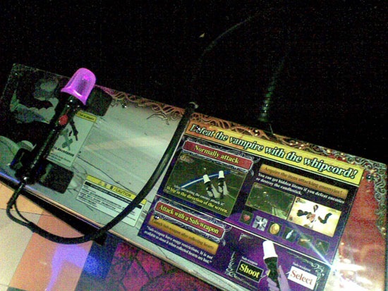 The photo above is of the mood lamp whip controller. Yes, you actually whip Dracula’s minions in this light gun-like arcade game. To strike you point the whip controller at the skeleton you want to hit then swing the controller.