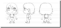 Since this is a full remake, Quote is being redesigned as well. Each character has orthographic concept art approved by Daisuke "Pixel" Amaya. From top left to bottom right we have Quote, Curly Brace, Igor, and Misery.