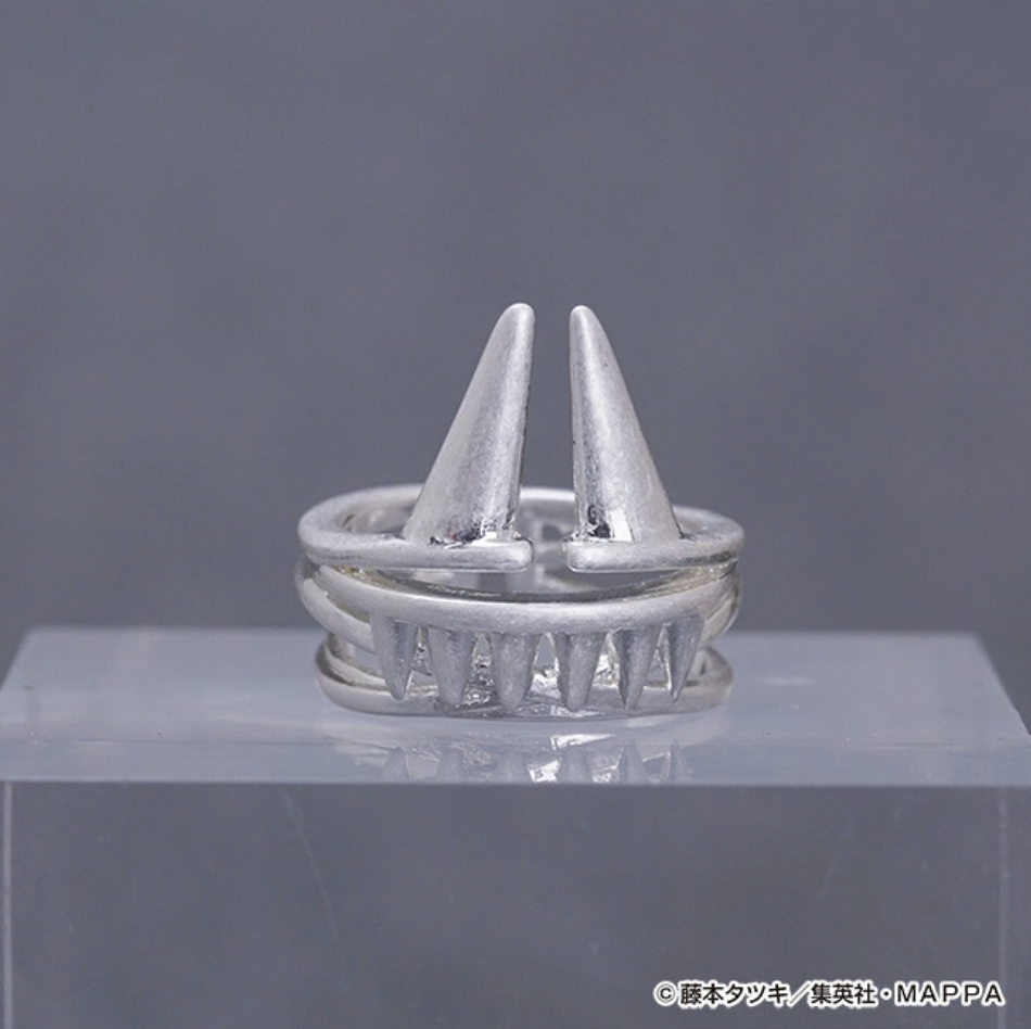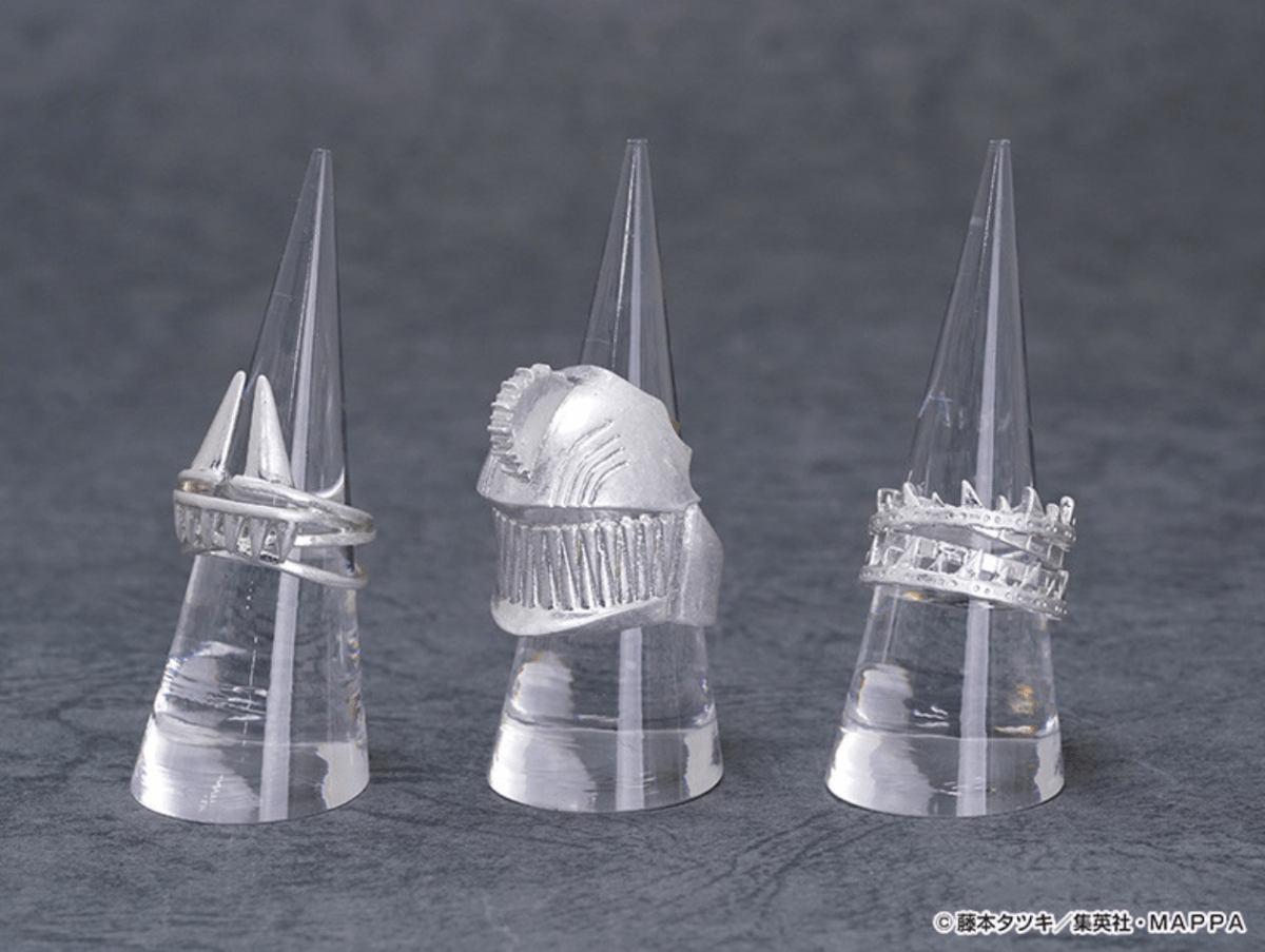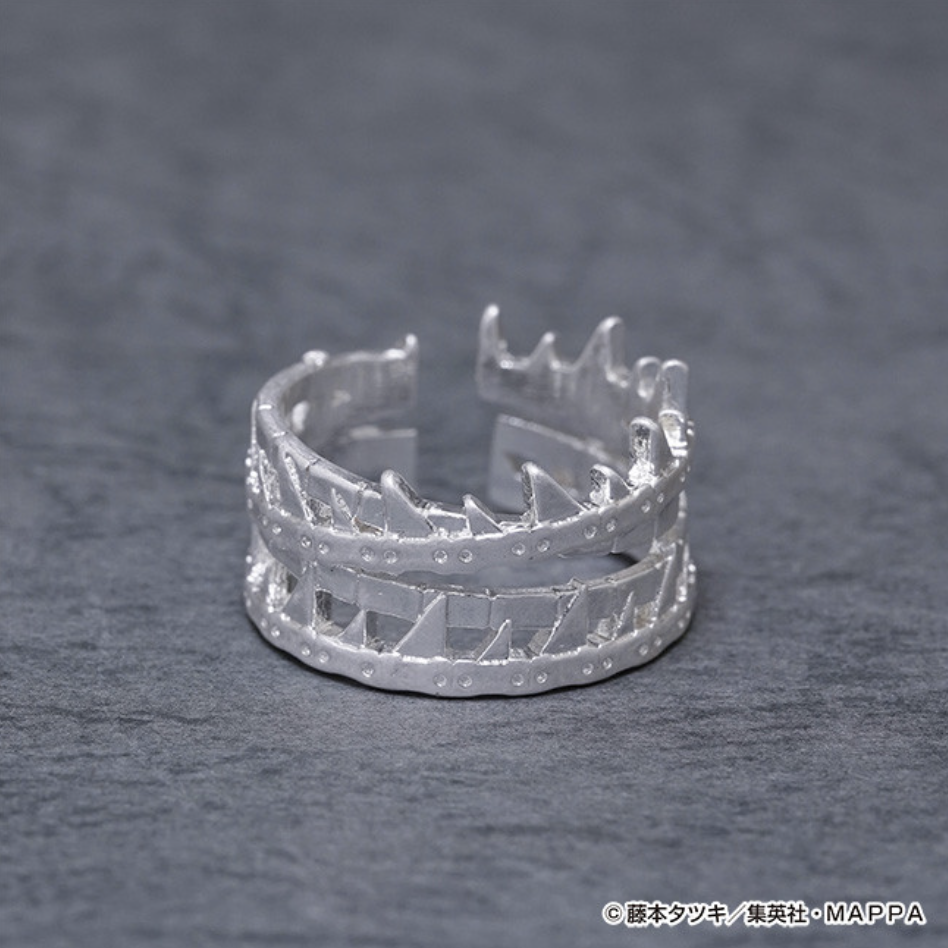 Chainsaw Man rings are based on Denji and Power, with a third being a general chain. Each one is a size 19 ring, which is about 59.7mm around. (The chains and Power ones appear to be adjustable.) They are made out of brass, like the Pochita earring options. Depending on the version, the price varies. The Denji one is ¥5,500/$38.99, while the chains and Power ones are ¥4,400/#30.99 each.
