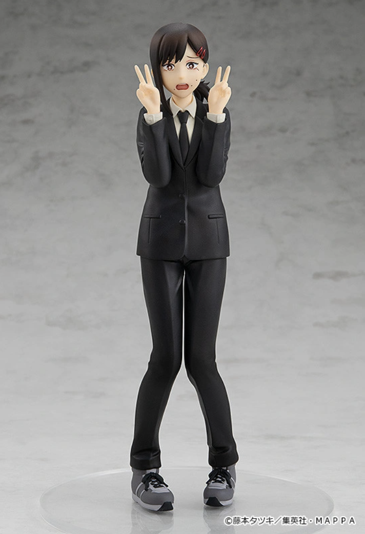 Good Smile Company announced it was working on an array of Chainsaw Man figures, and now two more Pop Up Parade ones of Himeno and Kobeni are on the way. Both are dressed professionally in their Public Safety Devil Hunter suits. Kobeni will appear first, debuting in Japan in June 2023 and North America in August 2023. Himeno will appear shortly after, coming to Japan in August 2023 and North America in October 2023. Each one will cost ¥4,800/$35.99. As is usual for Pop Up Parade figures, these versions of Himeno and Kobeni are non-standard size. That means they are each about six and a half inches tall. While each one is designed to look professional, they also have a casual air. As such, Himeno is pushing her hair back and Kobeni is throwing up peace signs. Here’s a closer look at Himeno.