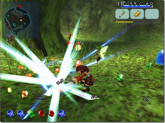 At times, you’ll almost find yourself wishing you could just level up. I’d say the first boss qualifies as a Nintendo Hard baddie. It’s this golem that’s about 4x larger than Elise and loves to jump (usually on top of Elise), spin (usually when Elise gets in close for a physical attack) and punch (typically when you want to get in range for a Chante magic attack). I want to say it took me five times before I finally worked it out and beat it, relying strongly on Chante’s magic (fire and thunder work really well) since that seemed to do the most good. What makes it taxing is that it can be difficult to check the boss’ hit points when attacking, since the bar of its health is light blue and the general background of said bar is white.