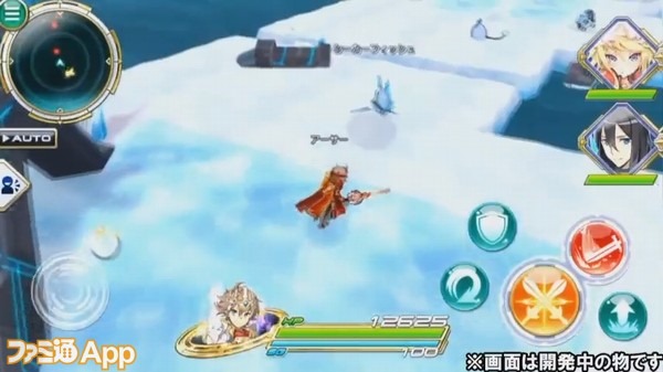 The action game involves running around in a 3D field, with a jump button. Characters can perform special attacks in tandem with other allies.