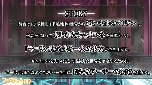 Kou-Kyou-Sei takes place in Britain in the far future of Kai-Ri-Sei, and therefore even characters with the same name are different people in this game. Camelot has been taken over by somebody, and a young girl who goes by the name of ‘Merlin’ rises up to retake Camelot. With a new Excalibur in hand, she starts choosing new ‘Arthurs’. Merlin (CV: Saori Hayami)
