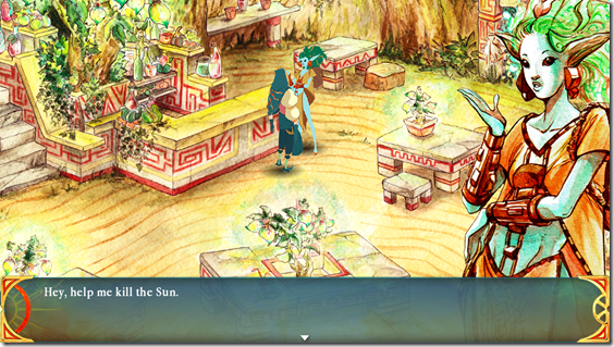 Selling Sunlight will have players travelling to several cities in a world where the only civilization is along a line of light where the sun never sets. Players will meet many different characters and merchants along this strip of towns bathed in perpetual daylight, making friends and sales based on their behaviors with them.