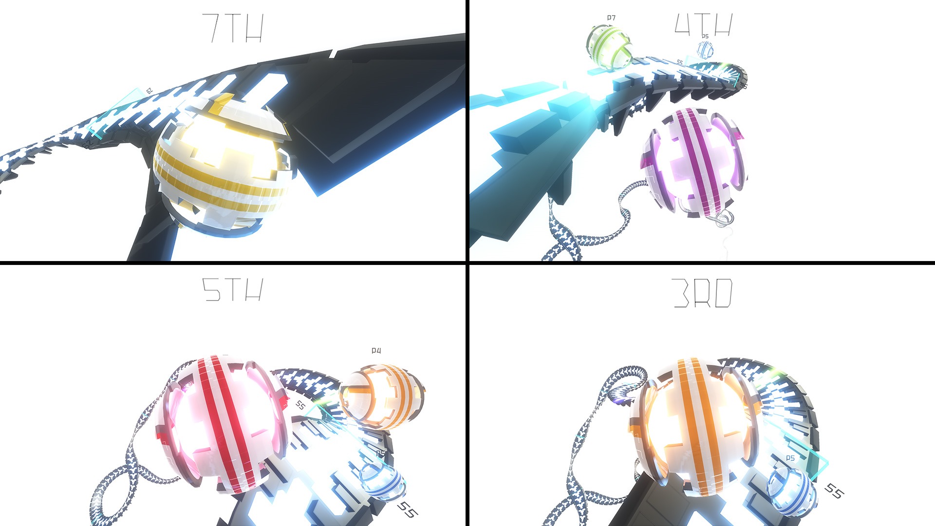 The minimalist racing game puts players in control of a ball the rushes down procedurally-generated tracks that are floating in a void. These tracks encourage players to throw themselves off the open sides, trying to fall down to the paths below to get ahead of the other racers.