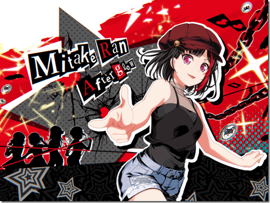 The smartphone rhythm game Bang Dream! Girls Band Party recently kicked off its collaboration with Persona 3, Persona 4, and Persona 5. Here’s some footage from the tracks it got from the collaboration. Here’s a look at some of the official uploads of expert mode clips of the three collaboration tracks performed by BanG Dream! bands: Roselia – “Kimi no Kioku” (Memories of You) from Persona 3 by Roselia Afterglow – “Reach Out to the Truth” from Persona 4 Poppin’Party – “Life Will Change” from Persona 5 You can check out the full songs in a hard mode playthrough in the video below by JustOneGamr: Lastly, here’s a look at the special Persona 5 collaboration illustrations featuring the girls from Afterglow: Ran Mitake (Joker x Arsene)