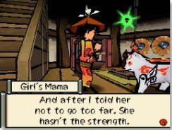 Judging by the new batch of screens Capcom released for Comic-Con 2010, Chibiterasu and Kuni aren’t the only descendants of characters from the first game. It looks like the Celestial Brush Gods have had some offspring of their own. Hmm…I wonder what Waka’s been up to since his Okami days…