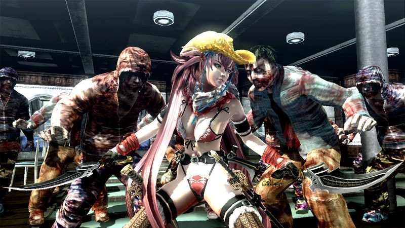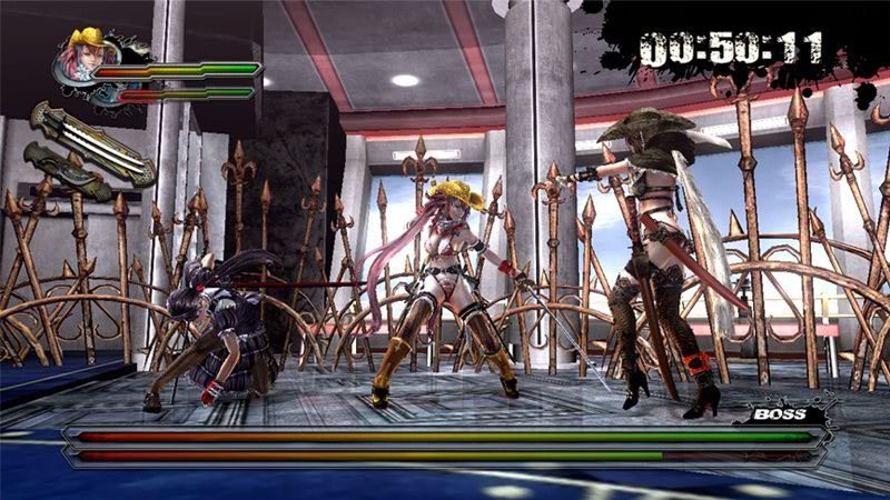 Aya and Saki, the lead characters from previous Onechanbara games, are your enemies in Onechabara Z: Kagura. It looks like you’ll have to fight both of them at once while trapped in a typical Onechanbara sword-fence.