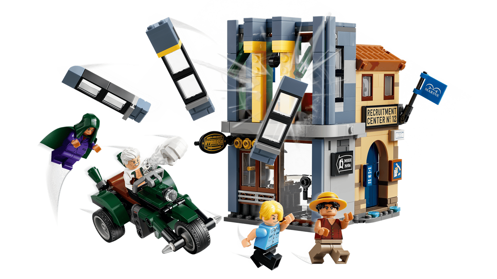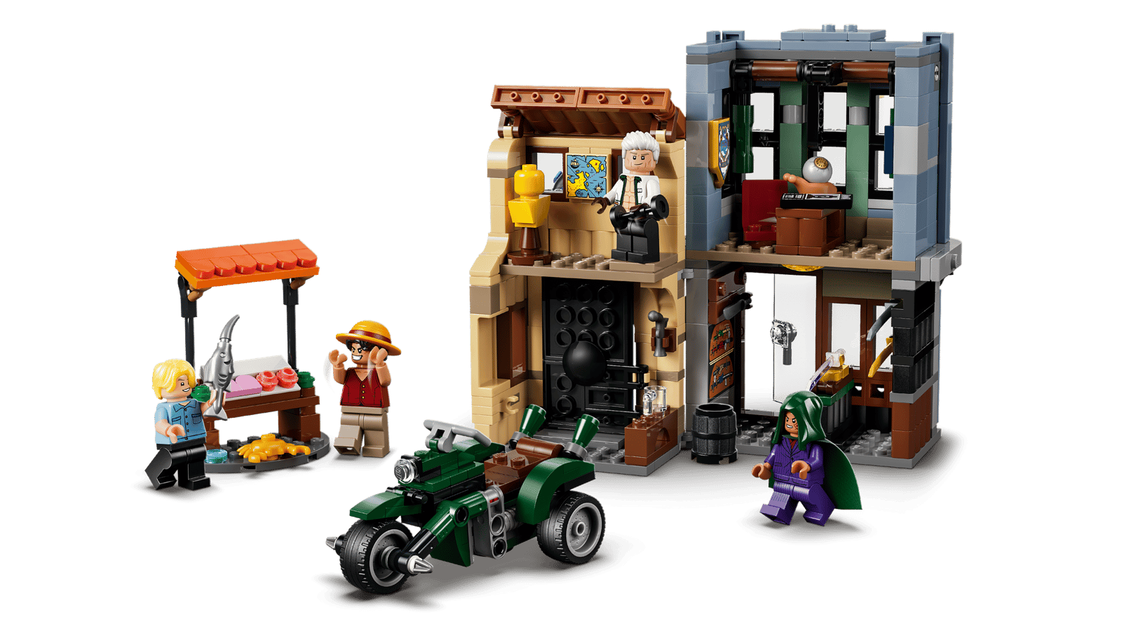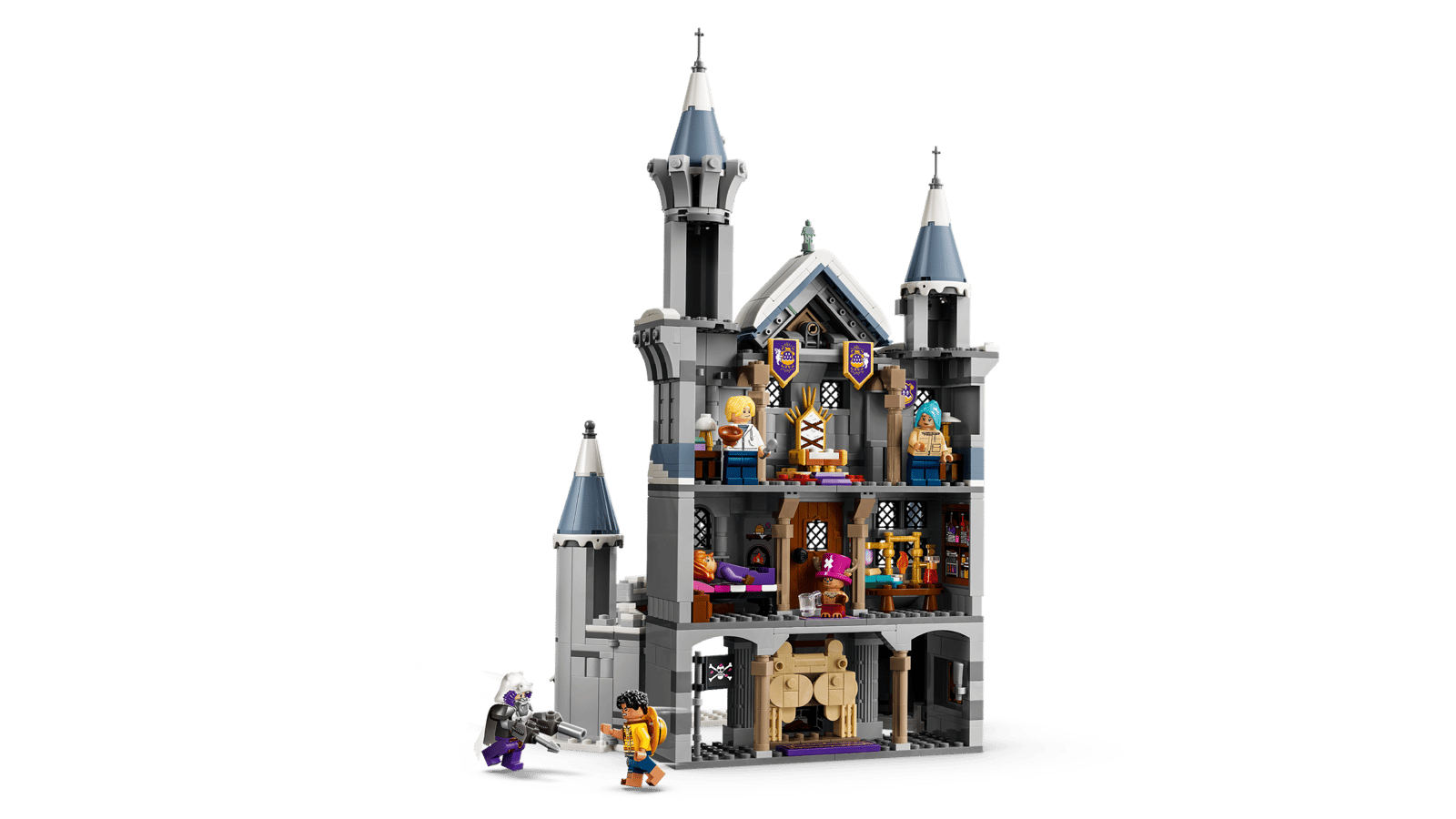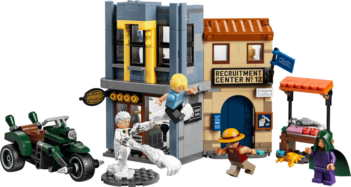 Each of the Lego One Piece sets features characters and situations found in season two of the live-action show. For example, we see some of the first moments the Straw Hat Pirates encountered and worked with Chopper, as there will be Battle at Drum Castle and Dr. Hiriluk’s Hideout sets. One set lets you essentially build a Chopper figure with accessories like a backpack and potions. Another set features a naval encounter, as it is Showdown with Captain Smoker.