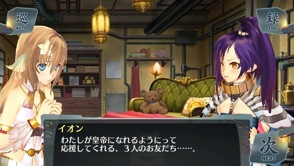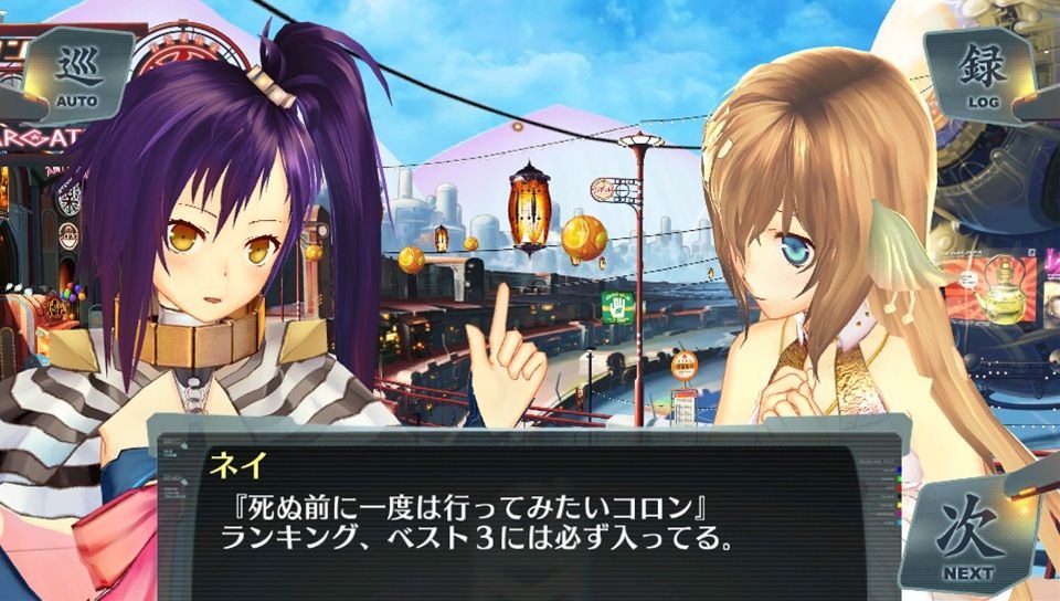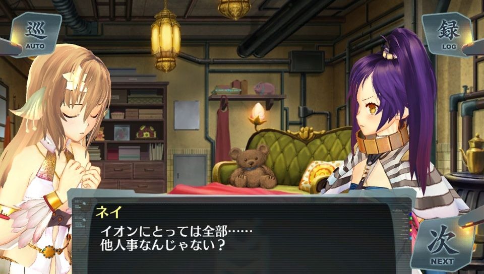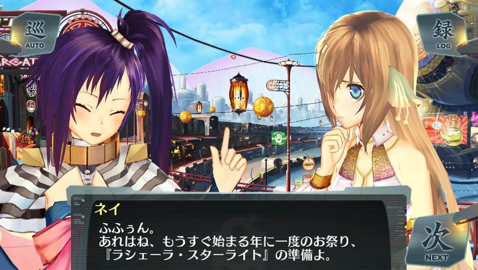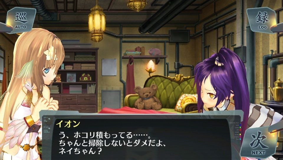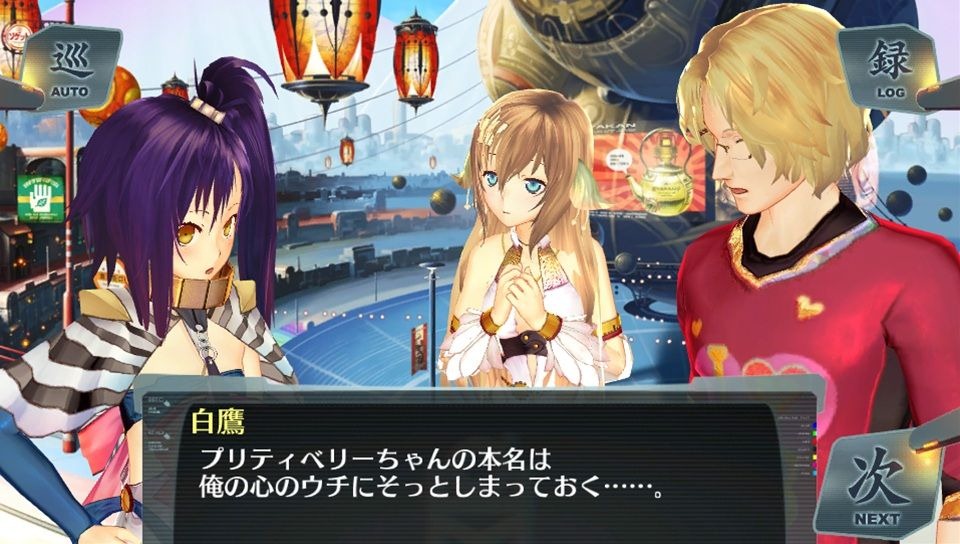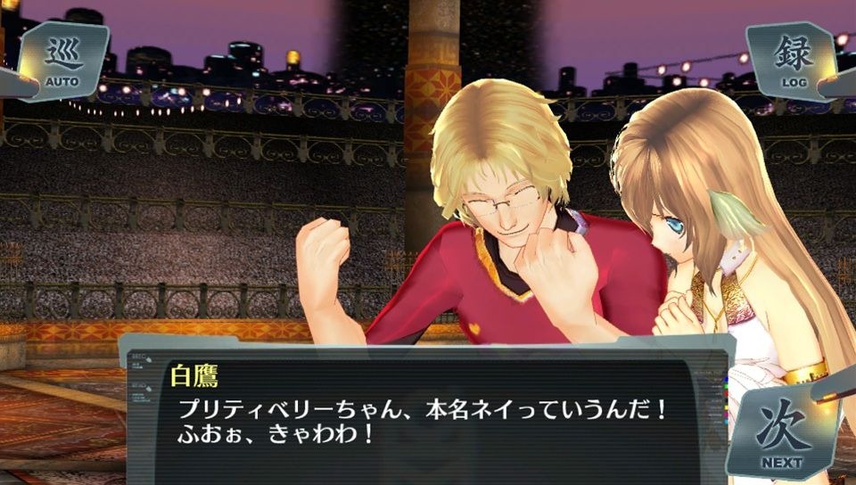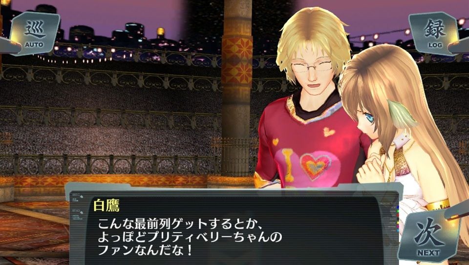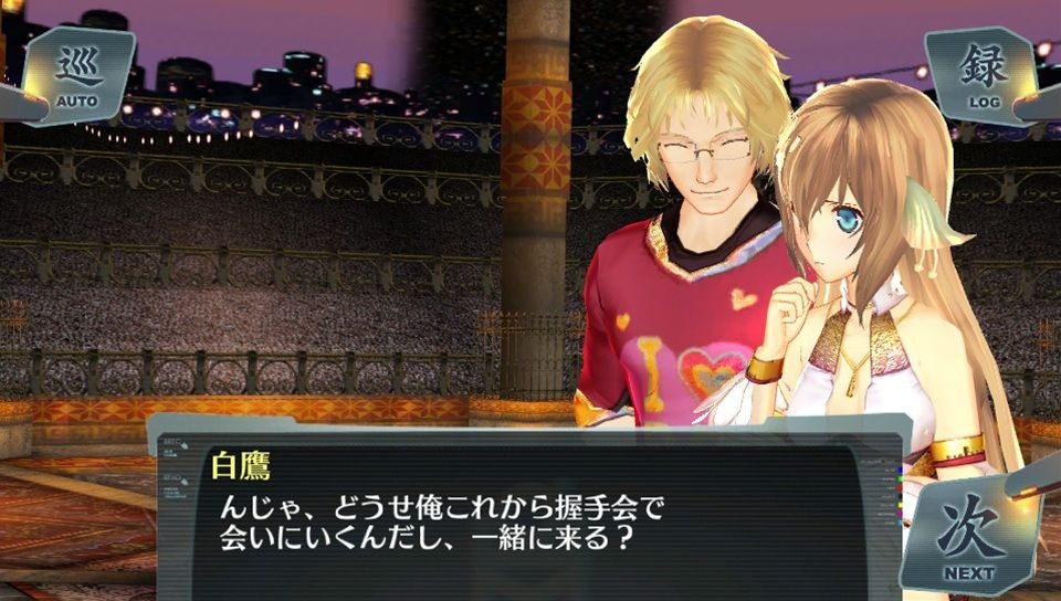 Ion meets Shirotaka, a new character, when she watches Nei perform. The two of them cheer Nei on during the show. Shirotaka usually works at a BIOS shop and his name is actually a pseudonym. Ciel no Surge World Pack Volume 3 will come out in September as a 500 yen ($6) PlayStation Network download.