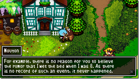 ClaDun x2‘s story is incredibly basic. You create a custom character who ends up in the realm known as Arcanus Cella. He or she doesn’t really have any memories, and just wants to get home. The few other people in Arcanus Cella, a mysterious man named Parchmin and three citizens named Pekora, Lamb and Mouton all say there’s no way to escape Arcanus Cella once you’ve been sent there. Pekora, Lamb and Mouton all aren’t very motivated to leave, since Parchmin can give them whatever they want, and also say that anyone who ends up there was sent there for a reason. Some kind of sin or indiscretion, to be specific. That’s pretty much all you get.