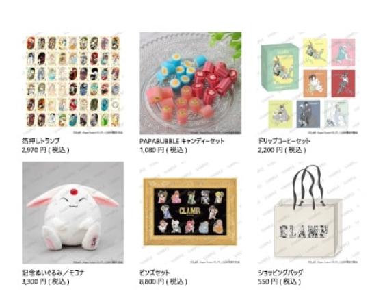 All of the merchandise feature either CLAMP characters or the CLAMP logo.