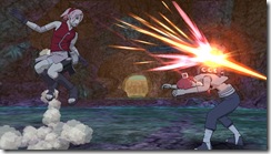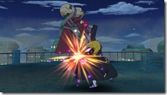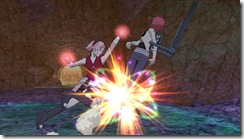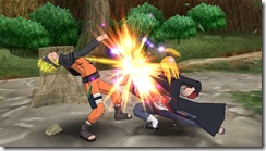 Naruto Shippuden: Clash of Ninja Revolution 3 also adds wake up moves to the system. If you think you’re opponent is going to strike with a jutsu move, you can counter with a wake up attack. This move grants a few frames of invulnerability which gives waking up players an edge even if an opponent is striking. If you want to retreat, you can use a wake up teleport by pressing strong attack while getting up. Teleporting drains half your chakra, but guarantees you’ll be out of harms way.