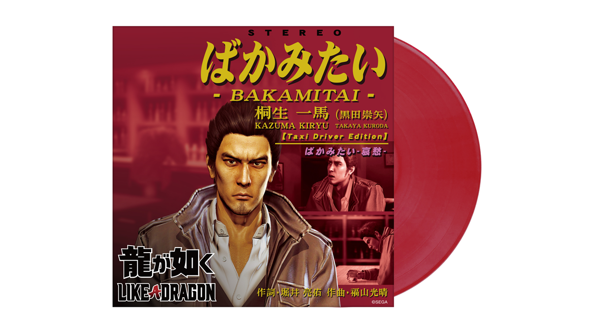 The upcoming Yakuza (also known as Like a Dragon) “Bakamitai” vinyl record will include “Bakamitai (Taxi Driver Edition)” as the main Side A feature, with the remix song “Bakamitai -sorrow-” as its Side B. Both sides will include full, short, and karaoke versions of each song for a total of 6 tracks. The song is performed by Kazuma Kiryu’s Japanese voice actor Takaya Kuroda.