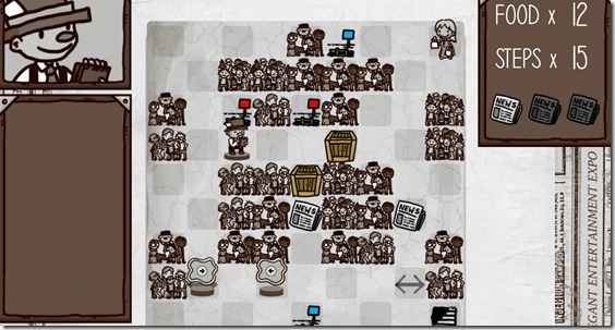 E3 was a lot harder for a journalist in 1915. Not only did you have to hunt down the hottest news scoops possible, you also had to avoid tuberculosis. What a drag. In celebration of this year’s E3, game developer Alexander Shen released a puzzle game called E3 1915 (thanksIndieGames.com). It has you travel back in time 100 years ago to an E3 that never existed (for the record, E3 didn’t start until 1995). The idea in each grid-based level is to collect the three newspaper icons and reach the exit before you run out of food.
