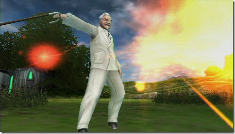 Last week, Sega announced KFC founder Colonel Sanders will be in Phantasy Star Portable 2 Infinity. Unfortunately, he isn’t armed with a ridiculous chicken shooting bazooka, he uses his cane to fight. Here’s a look at Sega’s finger licking good cameo.