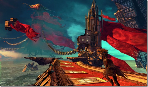 Capcom released a new batch of DmC Devil May Cry screenshots this morning. The setting in the screenshots is Limbo City, and also gives a glimpse of one of the game’s bosses. DmC is designed so that the environments themselves try to hinder Dante by warping and blocking his path. This feature came from Ninja Theory wanting to retain elements the original Devil May Cry games, which locked you into areas until you defeated all the enemies present.