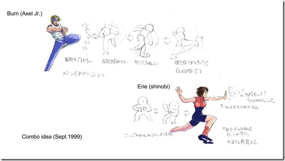Koshiro shared both of the images, which are dated September 1999, on his Twitter account. The first image shows the four main characters that were proposed. While the second image shows combo ideas for two of the characters – one is the son of Axel and is called Burn, while the woman is called Erie and is said to be a “shinobi.”