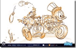 A few days ago, it was revealed that an Epic Donald videogame had, at one time, been planned by Disney and Junction Point, the same makers of the Epic Mickey series. In addition to that, concept art has surfaced which suggests that an Epic Mickey spin-off racing game was also in the works. [Thanks, Nintendo Everything.] Though the game ceased production early on in the process, the art reveals that Mickey Mouse, Minnie Mouse, Oswald the Lucky Rabbit, The Mad Doctor, Cruella De Vil, Scrooge McDuck and Huey, Duey & Louie would have been a few of the playable characters. The concept art also shows the characters able to attack to disrupt other players via their own personal weapons, such as Mickey’s brush and Oswald’s remote.
