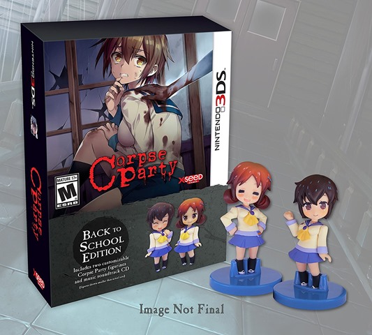 Publisher Xseed Games announced that Corpse Party on Nintendo 3DS will release digitally in North America and Europe on October 25, 2016 for $29.99/€29.99/£24.99. A physical limited edition will also be available for North America. The digital version will be available for North America and Europe, but the “Back to School Edition” was announced as a physical limited edition version for North America, and it’ll go for $49.99.