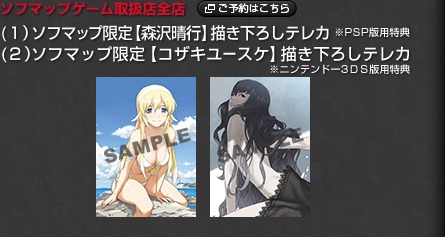 Phone cards with PSP version (left) and 3DS version (right) from Sofmap by Haruyuki Morisawa and Yosuke Kozaki respectively.
